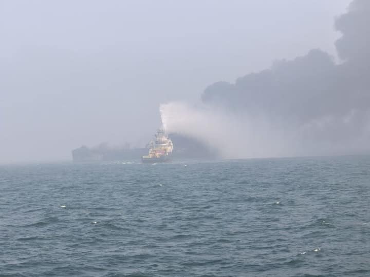 The Solong appeared badly burnt and smouldering. The coastguard said a one-kilometre (0.62 mile) exclusion zone had been placed around both vessels.