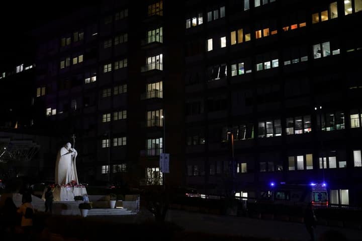VATICAN CITY (Reuters) - Pope Francis, battling double pneumonia in hospital for two weeks, had an "isolated breathing crisis" on Friday and received "non-invasive mechanical ventilation" to help him breathe, the Vatican said in a statement.