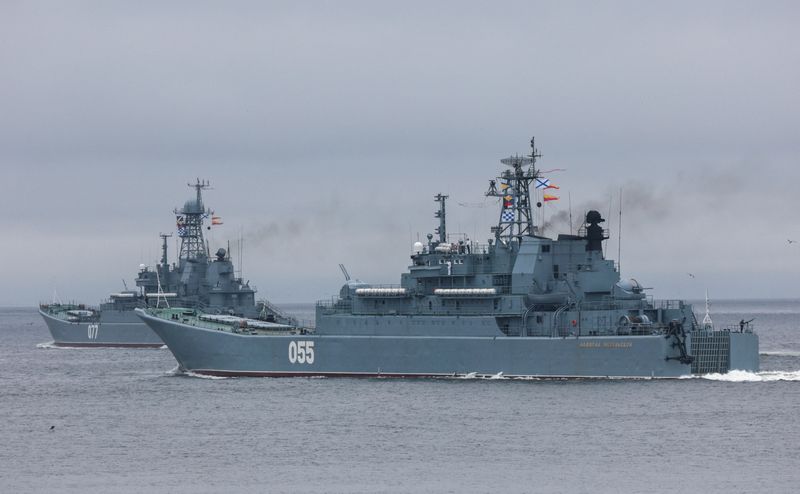 (Reuters) - The Russian Navy's large landing ship, Admiral Nevelskoy, conducted artillery firing drills in the Sea of Japan, Russian news agency Interfax reported on Monday, citing the press service of the Pacific Fleet.