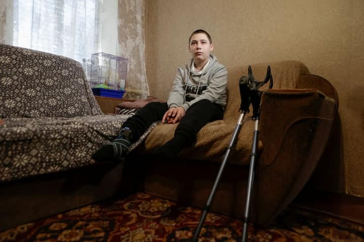 KHARKIV, Ukraine (Reuters) -Playing outdoors with his friend, Ukrainian teenager Nazar was badly injured when an explosive device blew up under his feet.