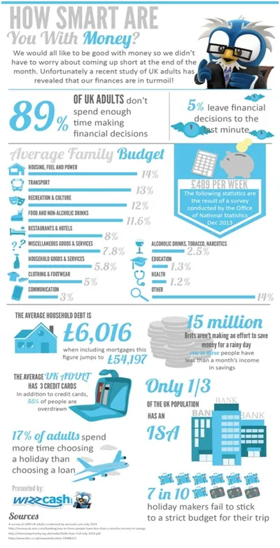 Figures from the Office for National Statistics (ONS) show that the average family has an income of approximately £489 per week. It showed that housing, fuel and household bills accounted for 14% of our outgoings, closely followed by transport (13%) and recreation and culture (12%).
