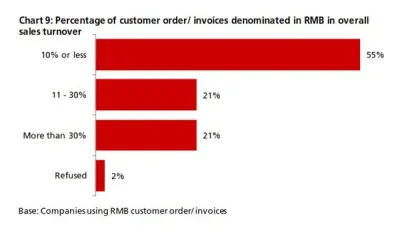- 42% (34%) of companies [4] reported that RMB customer order/invoices accounted for more than 10% of their overall sales turnover (Chart 9)