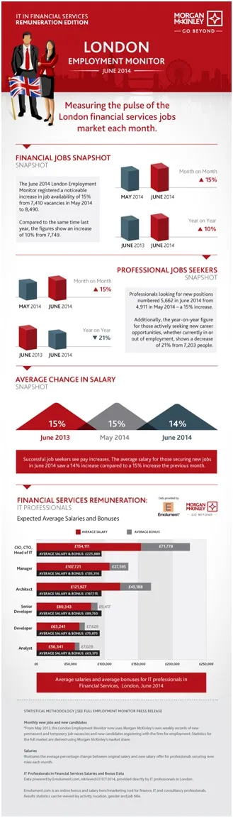 Chart 4: Average salary and average bonuses for IT Professionals in Financial Services, London, June 2014