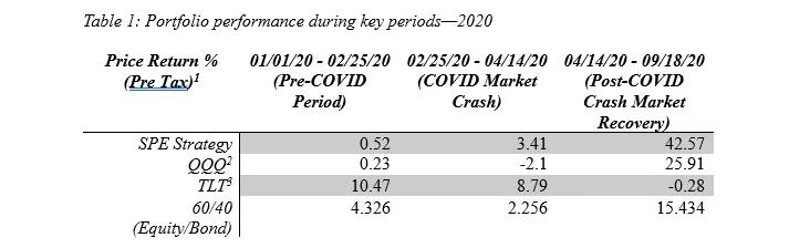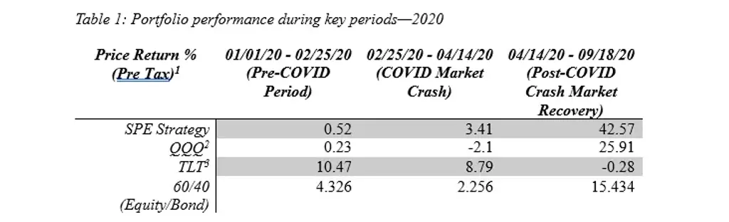 Real-world performance Back-tested data by the author illustrates the effectiveness of this approach during volatile and recovery periods. For instance, during the COVID-19 market crash (February 25 to April 14, 2020), the Stability Powered Expansion Portfolio strategy achieved a return of 3.41 percent (Table 1).